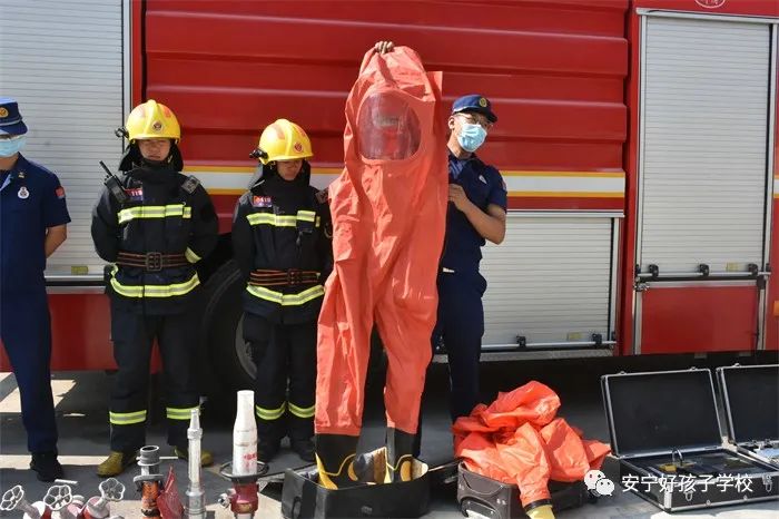 為了讓消防知識(shí)在同學(xué)們心中扎根,實(shí)操演練結(jié)束后,消防指戰(zhàn)員還向大家講解了消防水泵、滅火毯、防煙面罩、多路閥、隔熱服、破拆工具、水帶等消防器械的功能及其使用方法。