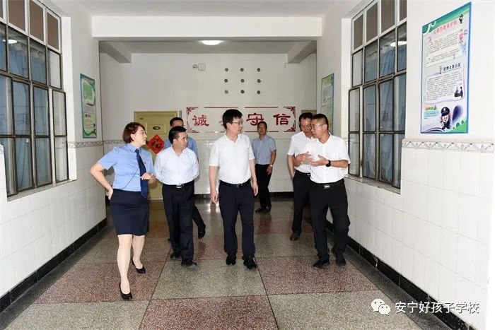 調研組一行懷著對學校的關心、關切之情,親切地走進了學校的辦公樓、教學樓、心理輔導室、學生宿舍等進行全面了解。其間,李副廳長還就學校辦學模式、辦學特色、安全管理、學生生源、師資配比、學生“出口”去向等方面,與學校進行了深入交流,魯校長逐一向李副廳長作了匯報。
