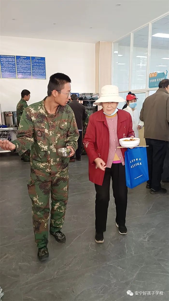 到達目的地后,同學(xué)們就立即行動起來。有的協(xié)助社區(qū)工作人員布置活動現(xiàn)場,有的幫助爺爺奶奶領(lǐng)牌登記,有的維持現(xiàn)場秩序,有的幫忙打飯、倒水......老人被孩子們的真誠熱情深深打動,和孩子們親熱地閑聊起來。孩子們得體的言談和暖心的行動,得到老人們的交口稱贊。養(yǎng)老服務(wù)中心不時傳來陣陣歡笑聲,呈現(xiàn)出一派其樂融融的景象。