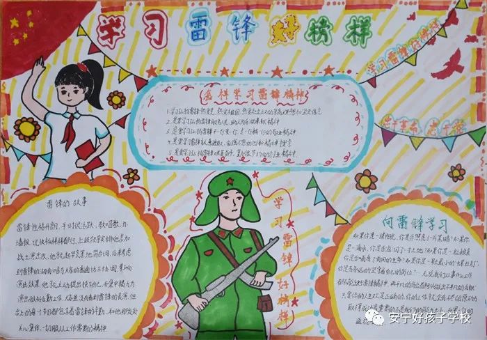 下午,孩子們踴躍參與到“學(xué)雷鋒”手抄報(bào)活動(dòng)中。在制作過(guò)程中,孩子們通過(guò)描繪雷鋒肖像、介紹雷鋒事跡、摘錄《雷鋒日記》等多角度重溫了雷鋒生平,有力地宣揚(yáng)了雷鋒精神。并結(jié)合實(shí)際,展現(xiàn)了身邊的“雷鋒”。