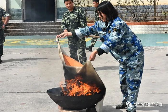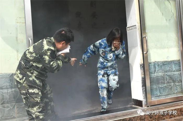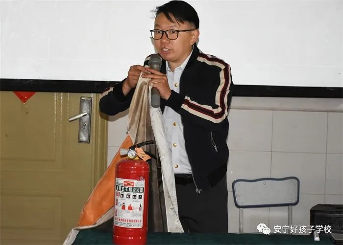 為了讓理論與實踐相結合,安全知識講座結束后,學校還組織師生進行了消防應急演練活動。在緊張的逃生演練環(huán)節(jié),孩子們在老師的指引下,用濕毛巾捂住口鼻,彎腰曲背小步快走,迅速有序地按照緊急預案的疏散路線離開宿舍、教室,成功撤出,安全到達指定位置,全程僅用時一分鐘。隨后進行火災撲救演練活動。演練前,唐老師再次詳細講解了滅火器、滅火毯的正確使用方法,并示范動作要領,全體師生認真學習,并親身體驗。