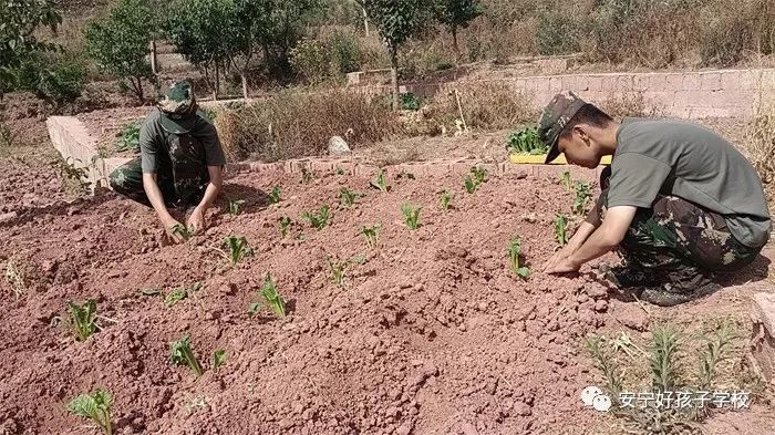理論必須與實踐相結(jié)合,在老師的示范、指導(dǎo)下,同學(xué)們熱火朝天地和老師一起翻土、栽種、施肥、澆水……經(jīng)過一個上午的辛苦勞作,秧苗終于有了自己的新“家”,它們排著隊,迎風(fēng)挺立著。同學(xué)們額頭上閃爍著汗珠,鞋子上、雙手上沾滿了塵土,可發(fā)自內(nèi)心的開心與幸福卻在臉上展露無疑。