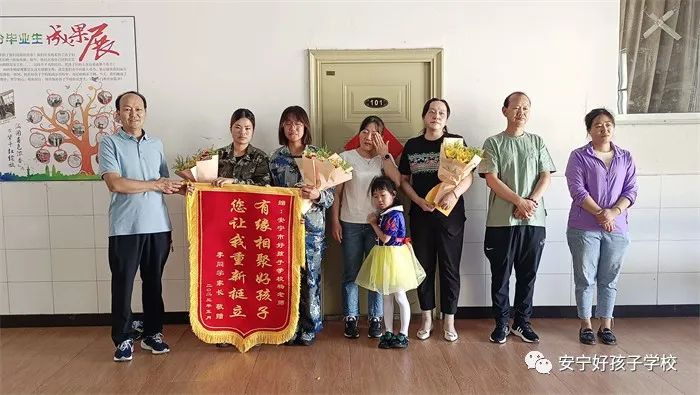 潤(rùn)物無(wú)聲,感恩有聲。為表達(dá)謝意,小李同學(xué)的父母將一面繡有“有緣相聚好孩子,您讓我重新挺立”字樣的錦旗贈(zèng)給學(xué)校和孩子的班主任楊老師,以此感謝學(xué)校和老師對(duì)孩子的辛勤培育。