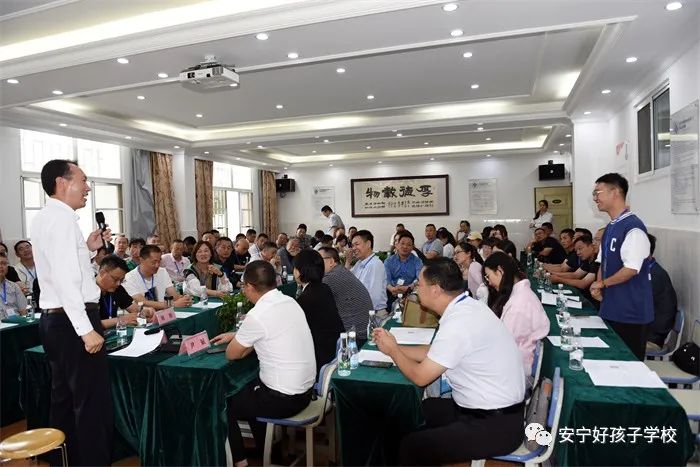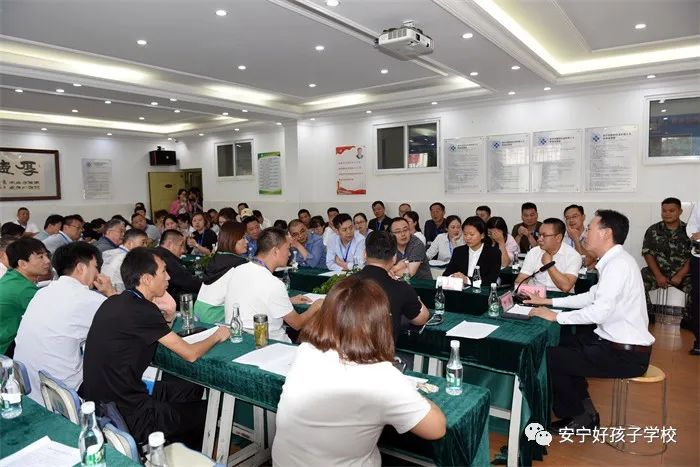 參觀結(jié)束,開展了如火如荼的座談會(huì)。魯校長(zhǎng)首先對(duì)遠(yuǎn)道而來的領(lǐng)導(dǎo)們表示熱烈的歡迎。隨后陳處長(zhǎng)對(duì)學(xué)校精準(zhǔn)的辦學(xué)定位、辦學(xué)宗旨、辦學(xué)成績(jī)給予了高度評(píng)價(jià),稱贊學(xué)校不僅是好孩子學(xué)校,還是一所“好學(xué)!,對(duì)學(xué)校充滿了謝意與敬意。緊接著,領(lǐng)導(dǎo)們還就學(xué)校的辦學(xué)特色、辦學(xué)理念、改變方法、心理輔導(dǎo)、學(xué)生作息、課程設(shè)計(jì)、教師培訓(xùn)、家校共育、安全管理等方面的內(nèi)容展開了廣泛而深入的交流。魯校長(zhǎng)對(duì)領(lǐng)導(dǎo)們的提問知無不言,言無不盡,一一進(jìn)行了解答。心理教研組長(zhǎng)趙松瑞老師就學(xué)校開展的心理工作向領(lǐng)導(dǎo)們作了簡(jiǎn)要匯報(bào)和分享。