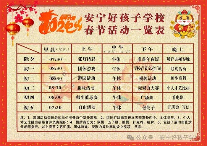 好孩子學(xué)校春節(jié)活動(dòng)一覽表