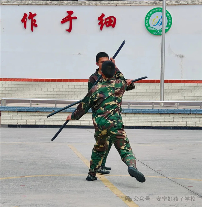 隨后,進(jìn)行的是男生方隊(duì)的棍術(shù)表演,同學(xué)們目光堅(jiān)定,不論是分解動(dòng)作,還是連貫動(dòng)作,一招一式,干凈利落、蒼勁有力,展現(xiàn)出新時(shí)代“小兵”的剛毅堅(jiān)卓。