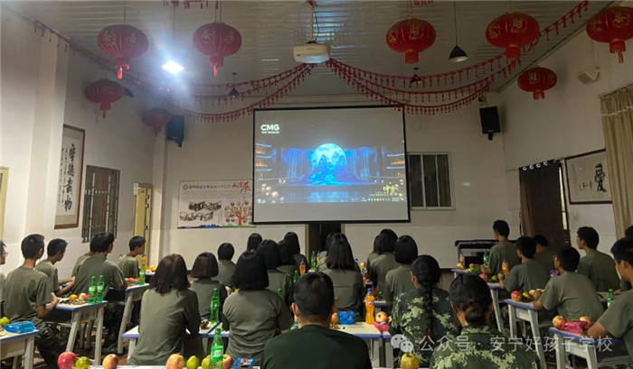 千燈萬盞,不敵一輪明月寄相思。晚宴后,全體師生齊聚多功能教室,一邊品嘗學(xué)校精心準(zhǔn)備的月餅、水果、板栗、花生、毛豆等,一邊觀看精彩紛呈的中秋晚會,相互分享生活中的趣事,歡聲笑語在空氣中彌漫。