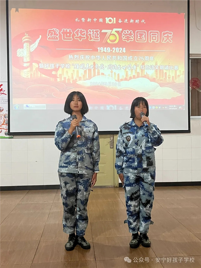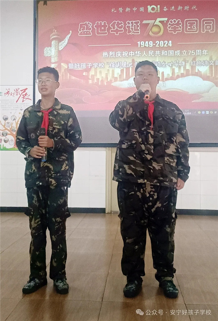 聆聽紅色之聲,感受誦讀之美。本次比賽既是向祖國母親75周年華誕的一次獻禮,也是一次心靈的洗禮,更是對歷史的傳承和對文化的弘揚,它深深地喚起了我們的民族自豪感和責任感。青春中國,步履不息。新時代同心逐夢,新征程凱歌以行。藍圖已經繪就,奮進正當其時。好孩子學校將以此次活動為契機,用實際行動詮釋教育情懷,培育愛黨愛國初心,以更加飽滿的熱情秉承“改變一個孩子,幸福一個家庭,和諧一個社會”的宗旨,踐行“尊重、激勵、鞭策、喚醒”的教育理念,加滿油,把穩(wěn)舵,鼓足勁,用“奮斗筆”擎畫“幸福卷”,種好專門教育的責任田,幫助更多的孩子健康成長,助力教育共富,共同書寫新時代的輝煌篇章。