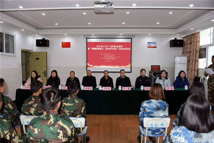 為深化校園法治安全教育,引導未成年人養(yǎng)成遵紀守法的行為習慣,提高未成年人法治意識,預防和減少未成年人違法犯罪,創(chuàng)建健康安全的校園環(huán)境。2024年11月28日,由共青團安寧市委、市關工委、市未司辦、云南省未成年犯管教所主辦,安寧市向日葵青少年事務服務中心與我校承辦的安寧市2024年“青護航·法相伴”暨“抵制校園暴力,法護青年成長”法治宣傳活動在我校舉行。安寧市關工委常務副主任李庭貴,安寧市關工委“五老”代表鄧成列、楊云生,云南省未成年犯管教所警官林子毓等領導出席了本次活動。