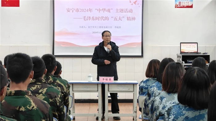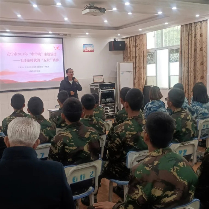普法講座結束,李主任為大家進行了毛澤東時代的“五大”精神——“中華魂”主題教育宣講。李主任深情回顧了毛澤東時代的光輝歷程,闡述了“五大”精神的深刻內涵和時代價值。他強調,新時代青少年要繼承和發(fā)揚“五大”精神,堅定理想信念,勇于擔當作為,為實現(xiàn)中華民族偉大復興的中國夢貢獻青春力量。