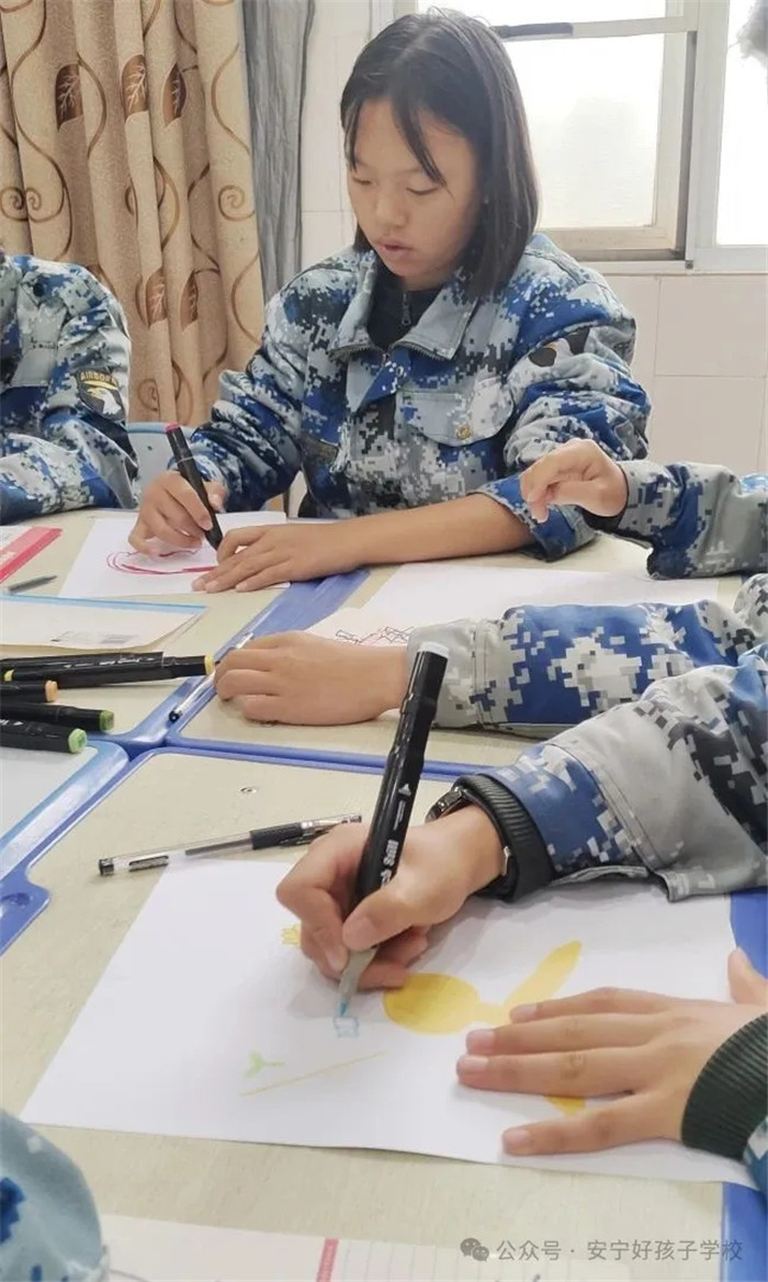 在“我手繪我心”創(chuàng)作環(huán)節(jié),藝術(shù)成為了孩子們表達(dá)內(nèi)心的獨(dú)特語(yǔ)言。有的同學(xué)用細(xì)膩筆觸勾勒寫(xiě)實(shí)自畫(huà)像,將外在形象與內(nèi)在性格巧妙融合;有的用繽紛色彩堆砌出奶油蛋糕,讓甜蜜的渴望在紙面流淌;有的繪制身著偶像球衣的自己,展現(xiàn)逐夢(mèng)路上的堅(jiān)定身影;更有的勇敢以灰調(diào)筆觸直面內(nèi)心的陰霾,讓迷茫與困惑在創(chuàng)作中得到溫柔安放。正如維特根斯坦所言:“語(yǔ)言的界限即世界的界限!碑(dāng)文字難以精準(zhǔn)描繪抽象、隱秘的情感時(shí),畫(huà)筆便成為了傾訴內(nèi)心的專(zhuān)屬語(yǔ)言。創(chuàng)作過(guò)程中,孩子們時(shí)而凝神思索,時(shí)而揮筆疾書(shū),那些原本模糊的“心的形狀”逐漸清晰可見(jiàn)。