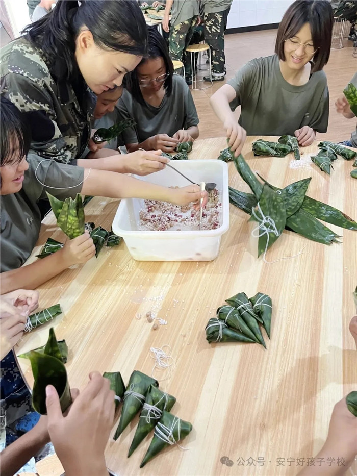 傍晚,香氣四溢的粽子端上餐桌,一桌桌豐盛的美食呈現(xiàn)在師生面前。孩子們一邊吃著豐盛的晚餐,一邊迫不及待地解開升騰著熱氣的粽子,心滿意足地品嘗著自己的“作品”,笑容分外甜蜜。鏡頭下,孩子們紛紛向父母、老師送上節(jié)日祝福,與同學相互勉勵,現(xiàn)場氛圍溫馨而美好。