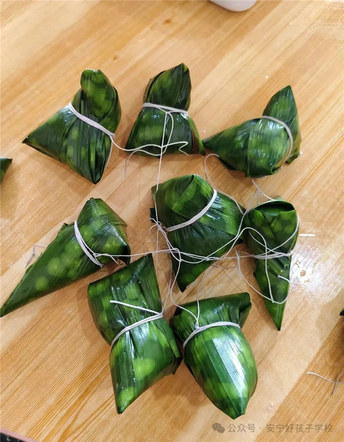 上午,學校餐廳歡聲笑語,熱鬧非凡。孩子們在老師的帶領下,熱火朝天地清洗粽葉,隨后,展開了如火如荼的包粽子活動。在老師的精心指導下,只見孩子們雙手靈巧地穿梭在翠綠的粽葉間,按照“一折葉、二盛料、三壓實、四包裹、五扎繩”的步驟,將香甜的糯米包裹進粽葉,再用細細的棉線纏繞扎實。不一會兒,一個個形態(tài)各異、大小不一的粽子便誕生了。這些飽含美好祝福的粽子,不僅是孩子們勞動的成果,更承載著他們對傳統(tǒng)文化的熱愛。
