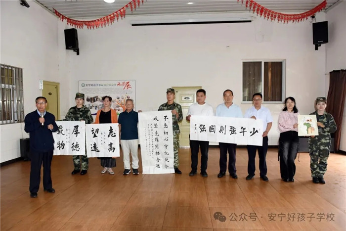 隨后,領(lǐng)導(dǎo)們還向?qū)W,F(xiàn)場(chǎng)贈(zèng)送了精心創(chuàng)作的書畫作品,寄語(yǔ)學(xué)!盀楹⒆映砷L(zhǎng)、家庭幸福、社會(huì)和諧持續(xù)貢獻(xiàn)力量”,蒼勁筆墨間凝聚著“為黨育人、為國(guó)育才”的殷切期盼。