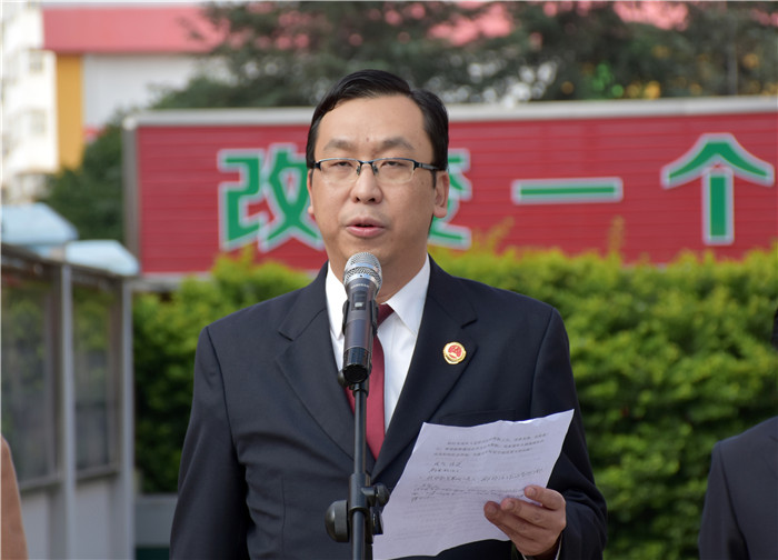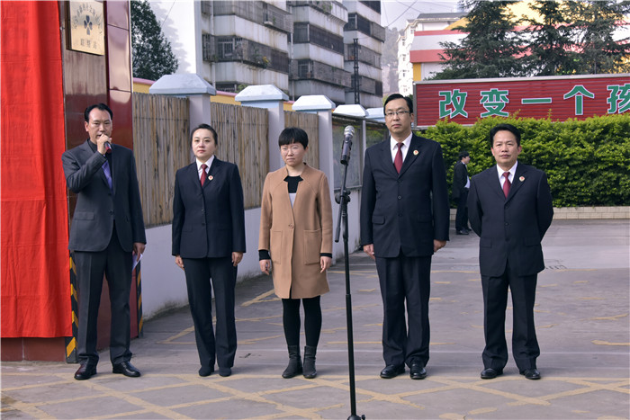 揭牌儀式上,魯校長(zhǎng)介紹了出席活動(dòng)的領(lǐng)導(dǎo)并致歡迎詞;隨后邀請(qǐng)了楊志剛檢察長(zhǎng)與盧敏副局長(zhǎng)為學(xué)校揭牌,全場(chǎng)響起熱烈的掌聲;隨后,楊檢察長(zhǎng)發(fā)表了熱情洋溢的講話:“今天很高興!安寧市人民檢察院與好孩子學(xué)校7月簽訂的《未成年人陪護(hù)教育基地共建協(xié)議》,今天終于落地揭牌了。檢校合作,是深入貫徹習(xí)近平總書記新時(shí)代中國(guó)特色社會(huì)主義思想的重要舉措;是落實(shí)中央《關(guān)于加強(qiáng)專門學(xué)校和專門教育工作意見(jiàn)》的具體體現(xiàn);是促進(jìn)未成年權(quán)益保護(hù)和犯罪預(yù)防體系建設(shè)的有益嘗試;更是促進(jìn)未成年人健康成長(zhǎng)的有力保障。專業(yè)的人做專業(yè)的事,好孩子學(xué)校辦學(xué)成績(jī)顯著,我們給予高度肯定!感謝好孩子學(xué)校對(duì)我市未檢工作和未成年人權(quán)益保護(hù)做出的重大貢獻(xiàn)。我們相信,基地的建設(shè),對(duì)引導(dǎo)我市廣大青少年樹(shù)立法治理念,減少違法犯罪和維護(hù)自身合法權(quán)益都具有極其重要的里程碑意義。做好未成年犯罪預(yù)防、幫扶,使命光榮,任務(wù)艱巨。今天的儀式只是個(gè)開(kāi)頭,希望我們能夠以此為契機(jī),在接下來(lái)的工作中,本著共建共贏的合作原則,充分發(fā)揮雙方的資源優(yōu)勢(shì),努力把合作引向深入,確保基地發(fā)揮實(shí)效,為未成年人的健康成長(zhǎng)創(chuàng)造良好的社會(huì)環(huán)境,為建設(shè)平安安寧作出更大貢獻(xiàn)!”